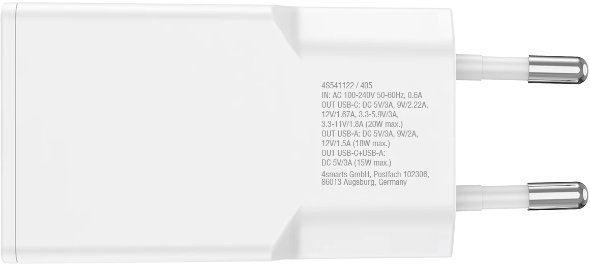 4Smarts Netzladegerät PDPlug Slim Duos 30W GaN 1C+1A Weiß