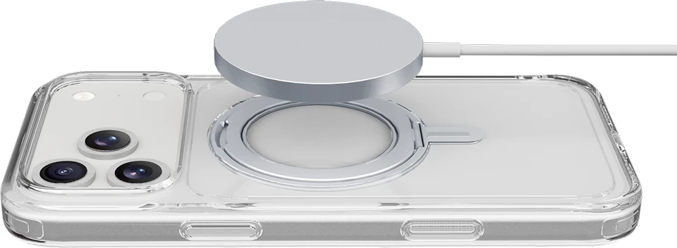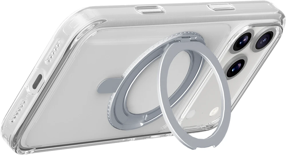 SPINMAG ist das transparente Etui mit drehbarem Standring, das mit dem MagSafe-Ökosystem vollständig kompatibel ist. Sein innovatives Design umfasst einen um 360° drehbaren Ring, der mehrere Funktionen bietet, wie z. B. die Möglichkeit, sich in einen Ständer oder Standfuß zu verwandeln. Der integrierte Ring wird zu einem festen Bestandteil des Gehäuses, wenn es nicht benutzt wird, und ist somit vollständig mit MagSafe-Zubehör kompatibel. Die erhöhten Ränder um das Display und die Kamera bieten zusätzlichen Schutz vor versehentlichen Stößen und Stürzen.